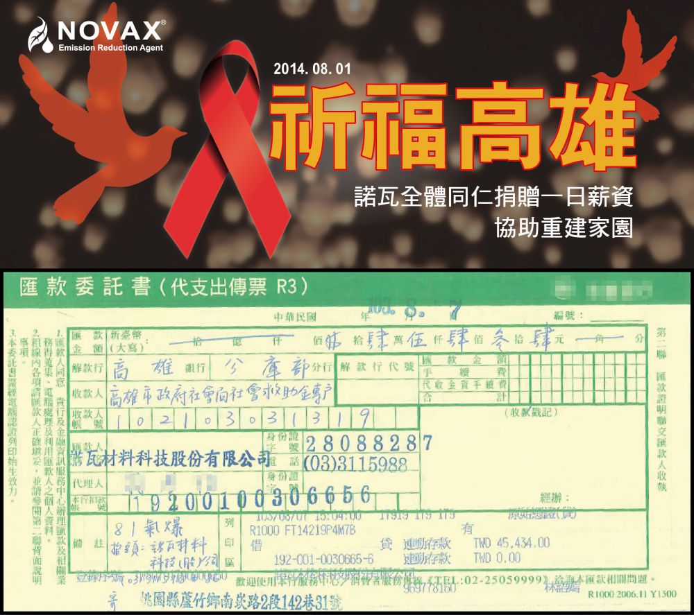 『天祐台灣,祈福高雄』諾瓦全體同仁捐贈一日薪資,協助重建家園!