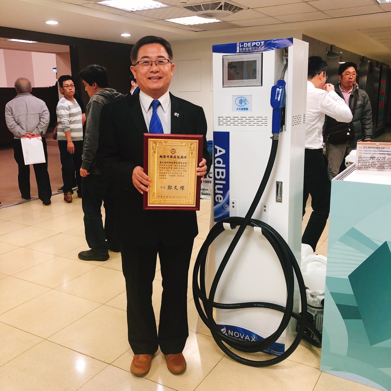 經發局主任秘書郭裕信表示,這次許多廠商在各領域皆有優異表現,如生產環保AdBlue車用尿素的「諾瓦材料科技」運用IoT技術開發出i-Depot機台,讓用戶可以控管車用尿素存量;解決大型車隊客戶日常管理AdBlue的痛點,滿足小型客戶與個人車主加注之痛點,以創新商業模式創造差異化競爭優勢,以i-Depot改善AdBlue產業地域性、時間性限制、化整為零,建立柴油車生態圈。